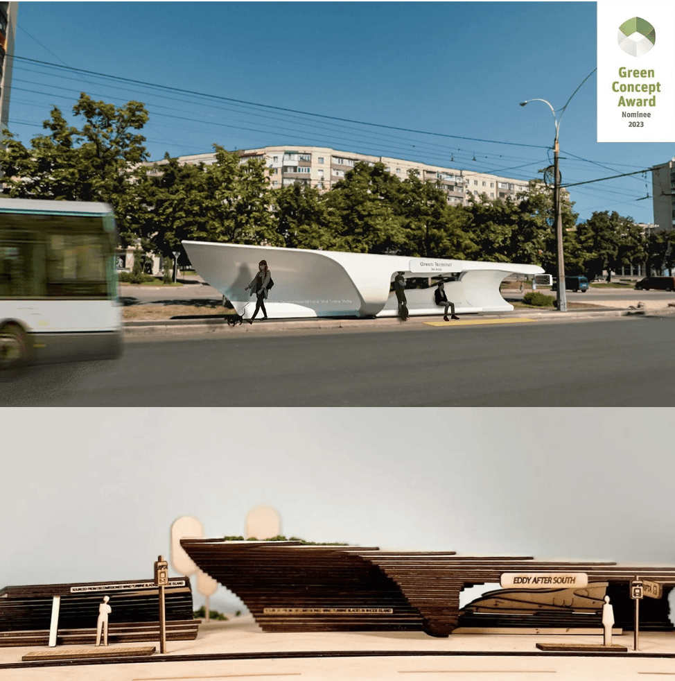 wind turbine blades as bus stops